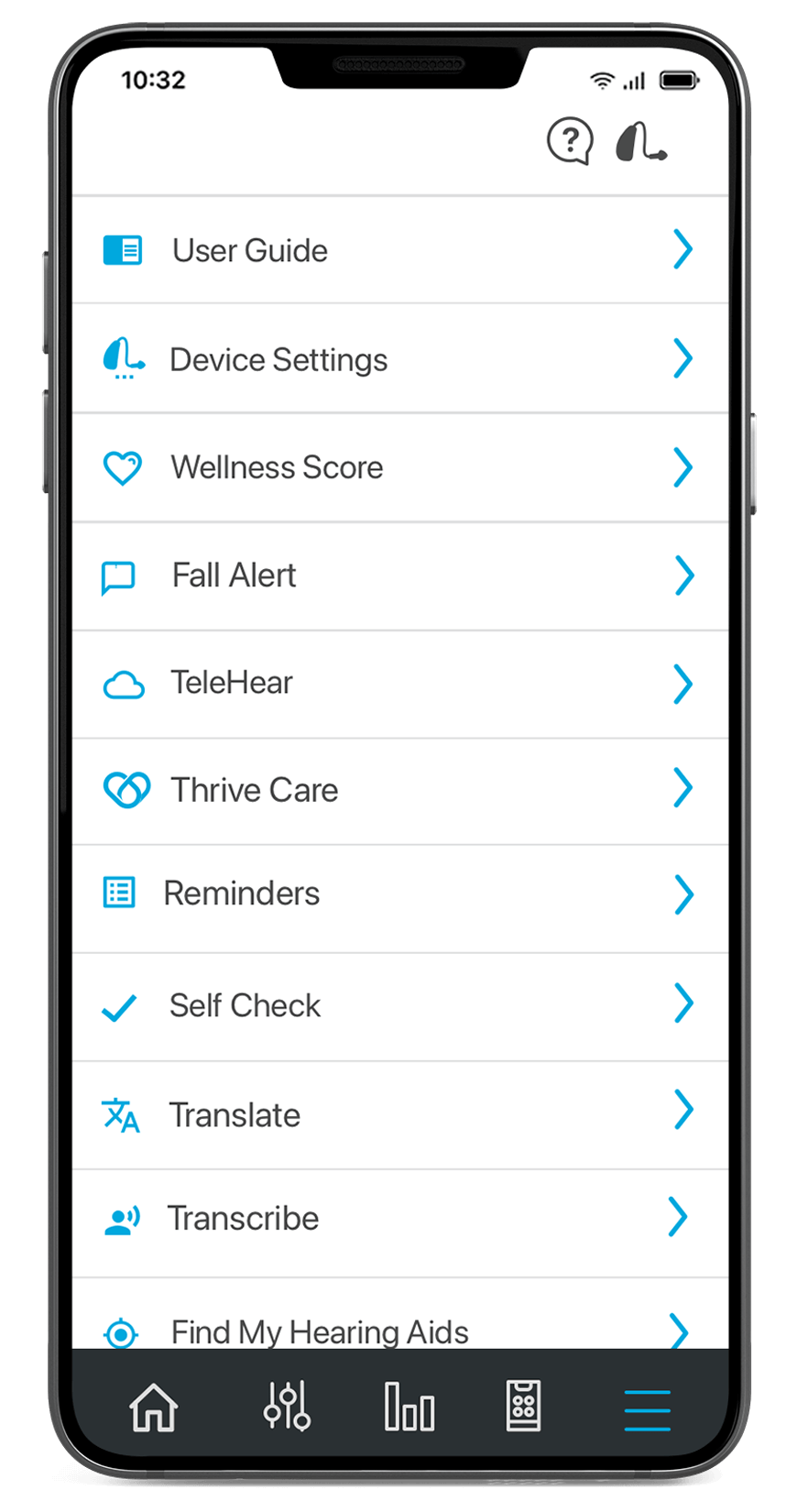 يعمل تطبيق Thrive Hearing Control بسلاسة مع سماعة Evolv AI لمنحك التحكم في السماعة الطبية. يمكنك بسهولة تغيير الإعدادات وضبط مستوى الصوت وإنشاء ذاكرات مخصصة وغير ذلك الكثير.