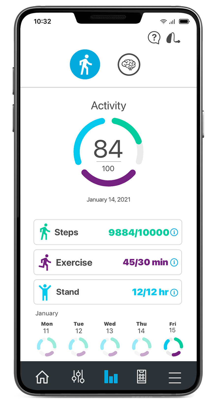 يتيح تطبيق Hear Share لمستخدمي السماعات الطبية مشاركة معلومات مثل النشاط البدني وبيانات استخدام السماعات الطبية والمشاركة الاجتماعية والمزيد مع أشخاص تم اختيارهم مسبقًا. حصريًا في السماعات الطبية من طراز حصرياً لسماعات Genesis AI وEvovl AI وLivio Edge AI.